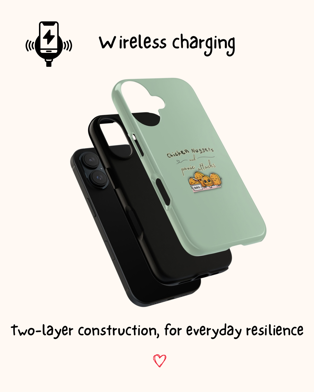 Featuring adorable illustrated nuggets, this phone case perfectly captures that relatable mix of humour, anxiety, and comfort food.